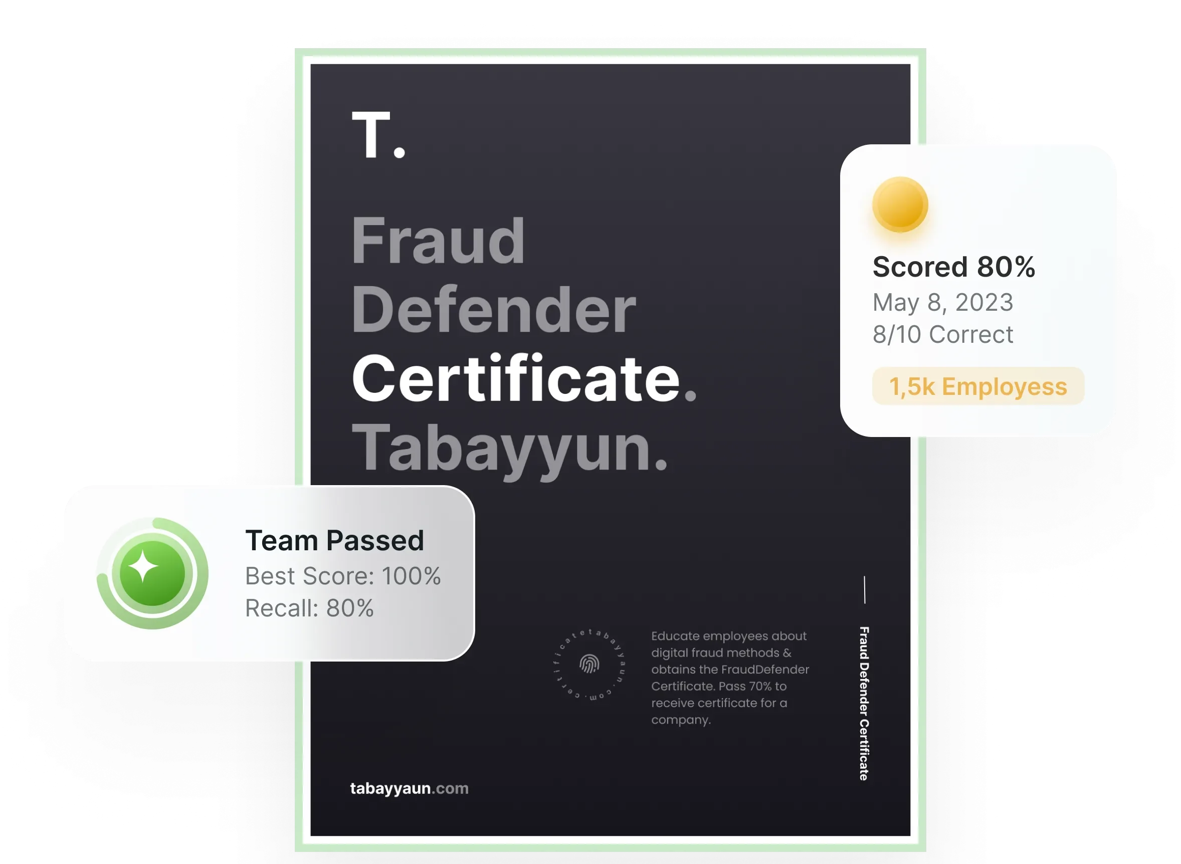 Educate employees about digital fraud methods & obtains the FraudDefender Certificate.